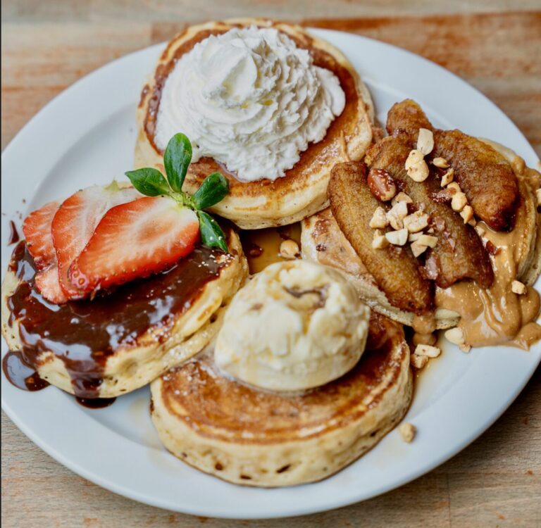 Variación de pancakes de: Peanut butter&Golden Banana, Maple&Vainilla Icecream, Nutella&Straberry, Cream&Maple